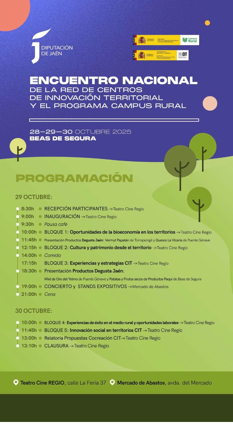 El Centro de Innovación Territorial (CIT) de Asturias participó durante los días 28, 29 y 30 de octubre en el Encuentro Nacional de la Red de Centros de Innovación Territorial y del Programa Campus Rural, organizado por la Diputación de Jaén. La cita reunió a responsables públicos, equipos técnicos y agentes del territorio para compartir estrategias que impulsen la innovación, la cohesión territorial y la transformación socioeconómica del medio rural.